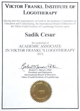 2019 yılında Victor Frankl Institute Of Logotherapy Başkanı Robert C. Barnes Phd. tarafından imzalı kendisine "Credential of Academic Associate İn Victor Frankl's" unvanı belgesi verilmiştir.